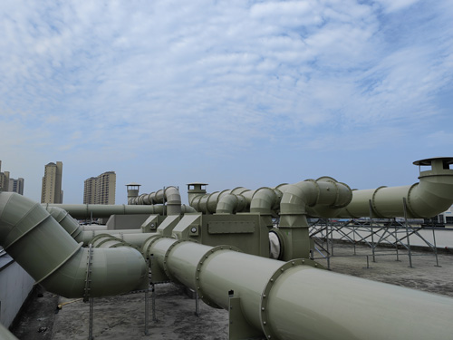 實踐室尾氣 → 活力炭進行濾芯過濾器 → 引生產的風機 → 釋放